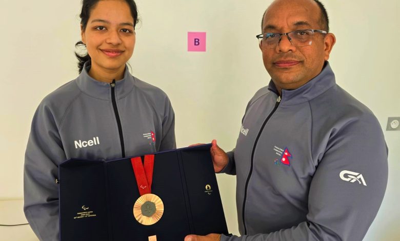 पेरिस पारालिम्पिक्स २०२४ मा ऐतिहासिक जीत दिलाउन सफल पारा तेक्वान्दो खेलाडी पलेशा गोबर्धनलाई एनसेलले नगद पुरस्कारसहित सम्मान गर्ने भएको छ । पलेशाको ऐतिहासिक जीतको सम्मानस्वरूप एनसेलले उनलाई १० लाख रुपैयाँ दिने भएको हो ।