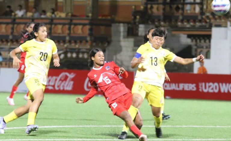एएफसी यू–२० महिला एसियन कप छनोट अन्तर्गत नेपाल र भुटानबीचको खेल बराबरीमा सकिएको छ। भुटानको थिम्पुस्थित चाङलिमिथाङ स्टेडियममा भएको खेल १–१ को परिणामसहित टुंगिएको हो।